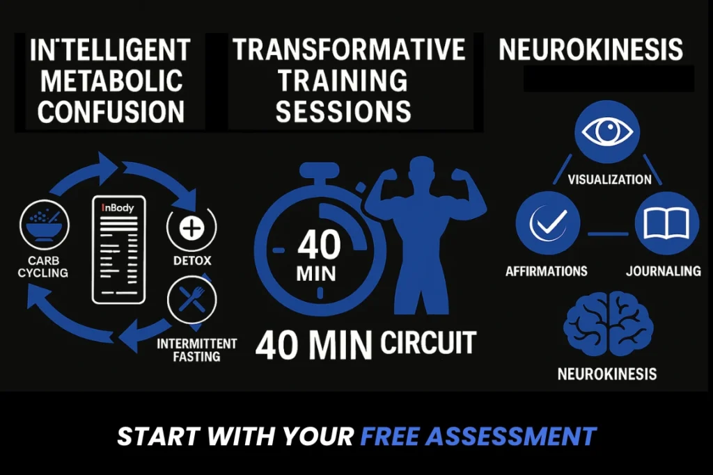 GC FIT Inner Circle offers executives a free InBody 270 scan, tailored metabolic nutrition, 40‑minute FIT360 workouts, and Neurokinesis™ mindset coaching in a private, high‑performance studio—guided one‑on‑one by Giovanni Cogua and backed by a 20 lb/6‑week guarantee.