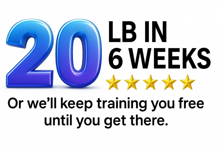 Most clients lose at least 20 lb in six weeks, regain energy and show visible changes in muscle tone—and if you don’t, we’ll keep training you free until you do.